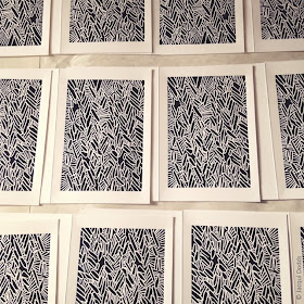 I started carving this lino block last summer, but because I was busy printing the main part of my exhibition I have only just got round to printing it properly. After carving the block I printed it as a blind embossing where there is no colour at all and you can see the lovely deckle edges of the paper: